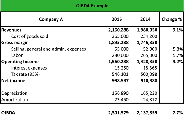 Marco is an accountant at company A, and he wants to calculate the company’s OIBDA for 2015 and compare it to the OIBDA of 2014: