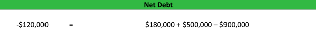 Net Debt = 180,000 + 500,000 – 900,000 = -120,000