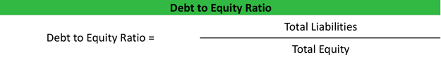 The debt to equity ratio is calculated by dividing total liabilities by total equity.
