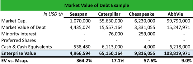 What is the definition of market value of debt? Firms report the book value of debt on their financial statements and not their bank debt. Although the book value of debt is most commonly used in empirical finance, the market value of debt is more accurate because it involves both the cash and debt of a firm, thereby taking into account the firm’s capital structure. Also, the market value of debt helps analysts to calculate the enterprise value of a firm, which is higher than the market cap if the company carries a lot of debt.