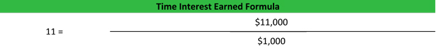For instance, a retail company needs an additional loan from a bank to update its retail storefront. The bank asks for the stores income and current interest levels. The company had net income of $10,000 and interest expense of $1,000. This means that the company’s income before interest expense equals $11,000. The time interest earned ratio is calculated like this.