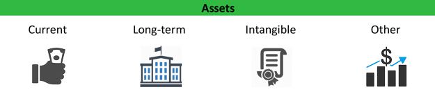 So what is an asset class? When assets are presented on the balance sheet, they are typically divided into different classes or categories based on when they will be used. Resources that are expected to be consumed within the current period are classified as current assets while resources that expected to be used in future periods are called non-current assets. Another class of resources is intangible assets. There resources typically consist of intellectual property. Resources that don’t fit into any of these three classes are simply called other assets.