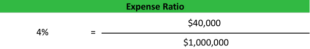 Assume you have $100,000 invested in a mutual fund with a total investment of $1,000,000. The expenses to operate the fund at the end of the year totaled to $40,000. We would calculate the expense ratio like this: