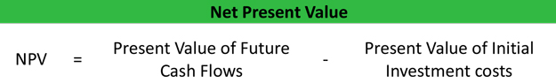As you can see, the net present value formula is calculated by subtracting the PV of the initial investment from the PV of the money that the investment will make in the future. This discounts the future dollars that will be generated over the course of the investment’s life with the current dollars that it costs to purchase the investment, so investors can compare the potential return from the investment with its initial cost.